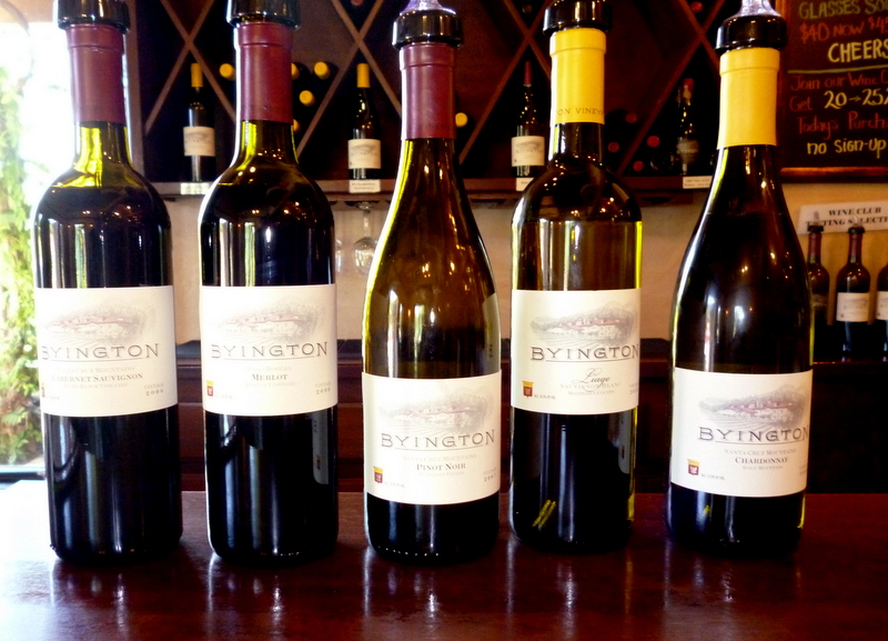 First stop was Byington Winery. Beautiful building surrounded by a great view of the mountains. I tried six of their wines. The 2009 “Ball Mountain” Chardonnay from Santa Cruz was golden in color with a spicy, pineapple nose good mouthfeel with a minirality running through it, nicely balanced