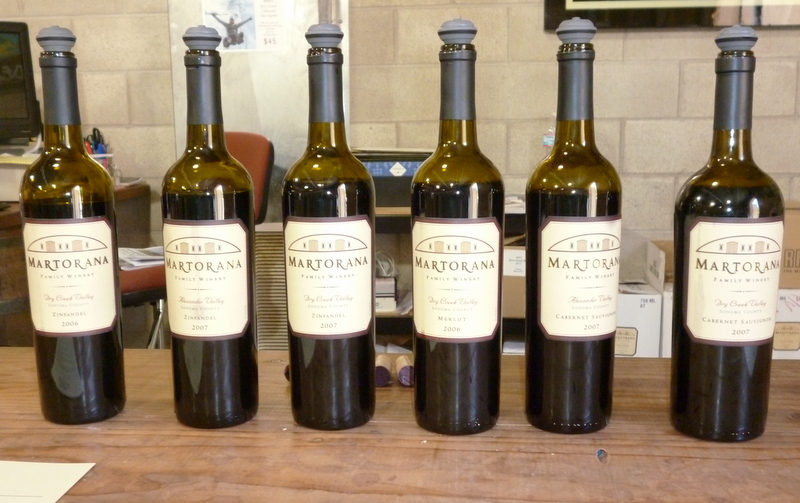 Next stop was Martorana Winery, a small family winery and the winemaker was doing the pouring duty in the tasting room this day. He poured wines made from Dry Creek fruit as well as from Alexander Valley fruit. The 2007 Alexander Valley Zinfandel was dark red with black cherries on the nose with good, but not jammy fruit and good balance. The 2006 Merlot DCV was dark red with blueberries on the nose and good concentration of fruit. The 2007 Cabernet Sauvignon DCV was dark red to black in color with chocolate and mint on the nose, good structure with mouth coating tannins on the finish.