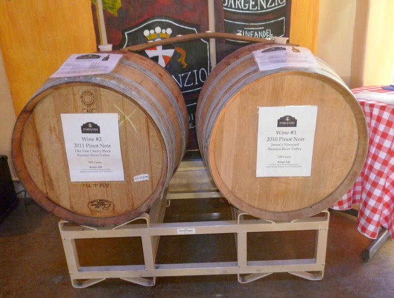 My final winery of the day was D’Argenzio which is located in a small mall with several other wineries. I had a chat with Mr. D’Argenzio, sipping his 2008 Bacigalupi Vineyard Petite Sirah (still in barrel!) while sitting in the back near the bocce court, listening to an excellent guitar duo and a pretty women shaking her tambourine.