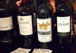The trade event was in the afternoon and there was a consumer event in the evening. I attended the trade portion of the tasting. It was a huge event with the usual charcuterie and cheese laid out for the trade, though the trade must have been very hungry since there was always a line at the food tables. One small room on the side was dedicated to wines from the Ribero del Duero, a wine region about 75 miles north of Madrid. Tempranello (local name Tinto Fino) is the big grape varietal in the region. Some of the Ribero del Duero wines I enjoyed included the 2007 Montecastro, the 2006 Callejo Reserva, the 2008 Tinot Pesquera Reserva, the 2006 Pagos Quintana Reserva and the 2001 Alenza Gran Reserva. At that part of the room they had a table with someone slicing bits of Iberico ham off a hock. That ham is outstanding and I spent a good part of the evening with a glass of red in one hand and a sliver of ham in the other.