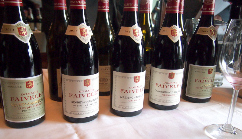 At the Domaine Faiveley table there was an extraordinary opportunity to try a horizontal tasting of fifteen of his Burgundy, four whites and eleven reds.