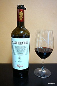 Allegrini produces both Valpolicella and Amarone as well as single vineyard and proprietary wines. Their Palazzo della Torre wine is stylistically somewhat in the middle of those two wines. It’s made in the “ripasso” method in which some of the grapes are set aside to partially dry out and then blended with the finished wine to undergo a second fermentation. This adds body to the wine.