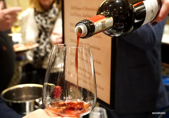 2017 Biondi Santi Brunello di Montalcino (Tuscany): Clear light red, barnyard notes on the nose, tight with earth notes on the fruit, nice balance.